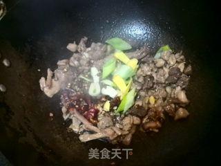 2. 炒制:锅中放油,加入花椒、干辣椒炒香,再加入腌制好的兔肉翻炒至变色。